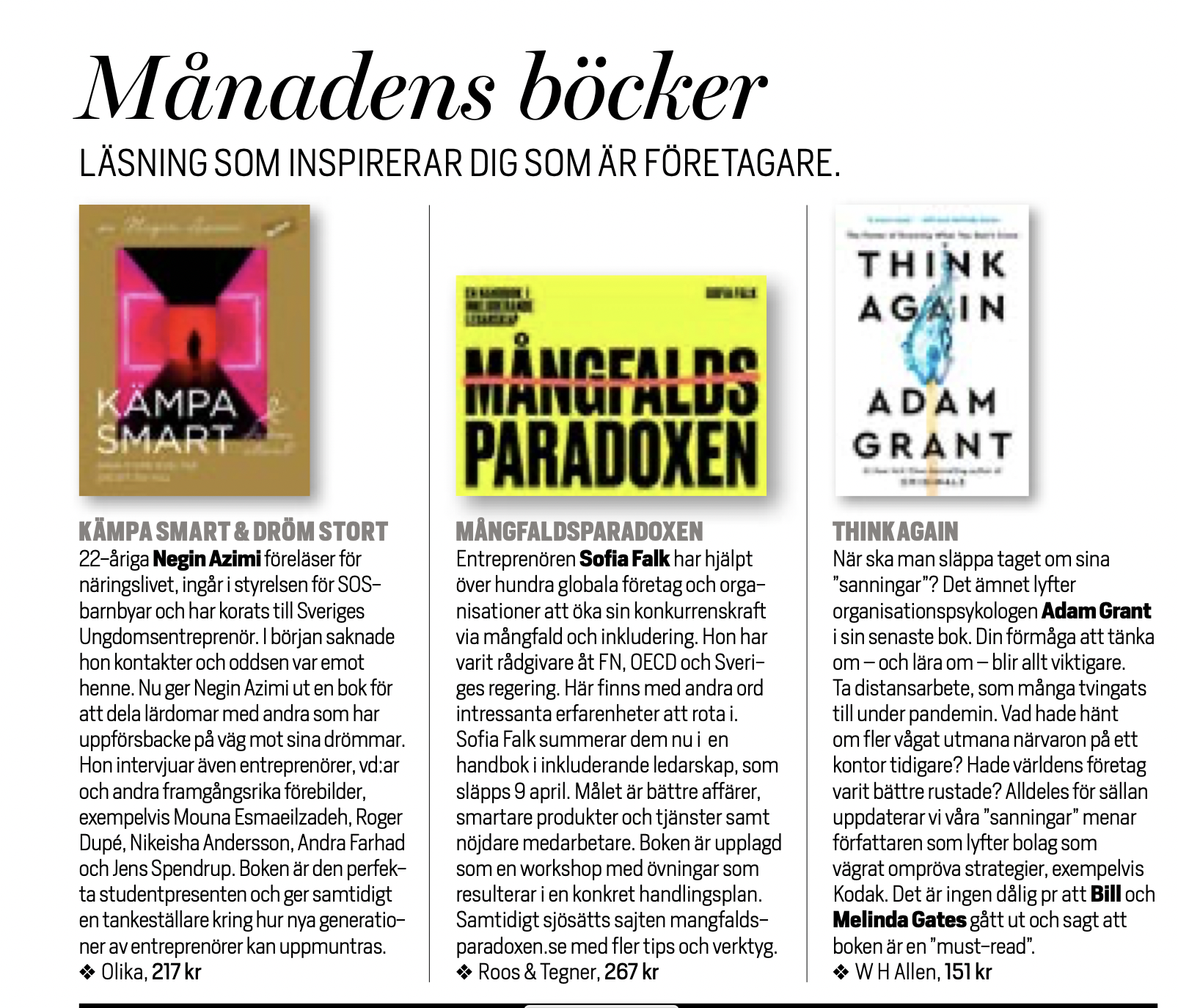 - TIDNING/ ONLINE: Tidningen Företagaren, tips på månadens böcker (klicka här)