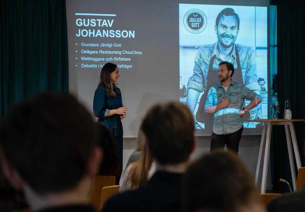 - Modererade nedan ett seminarium om företagande. På scen intervjuades bland annat Gustav Johansson, grundare av Jävligt Gott (2023).