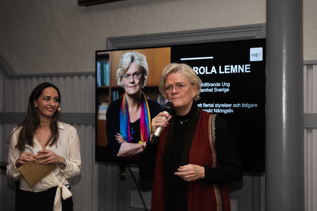 - Modererade nedan Ung Företagsamhets mingel hos Svenskt Näringsliv, där bland annat Carola Lemne, styrelseordförande Ung Företagsamhet Sverige talade (2023):