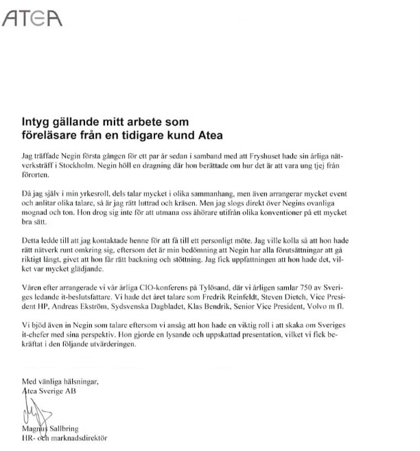 Det var ett nöje att samarbeta med Negin. En riktigt cool och relaterar person som gav en inspirerande föreläsning och skapade med det en känsla av möjligheter för framtiden hos publiken”